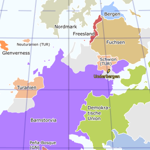 Das kleine Ländchen leitet sich in seiner Historie vom ehemaligen Soma ab. Es wurde umgestaltet um territorial an Schwion andocken zu können (Angliederung an das Staatsgebiet ist nicht vorgesehen). Im MN-Wiki finden sich alle relevanten Informationen. Für Fragen darüber hinaus stehe ich natürlich gerne zur Verfügung (kann aber RL-bedingt etwas dauern, weil ich außerhalb UDs in der Regel nur Wochenends schauen kann.
