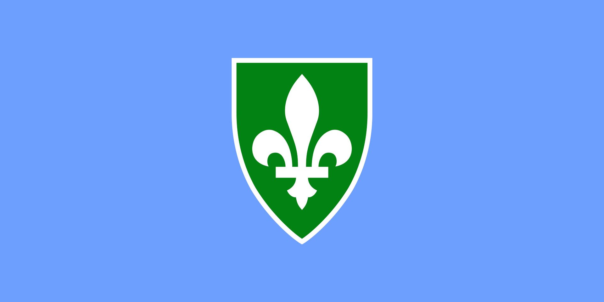 Ich bin also für die Flagge beim bisherigen Format 1:2 in Hellblau geblieben. In ihrer Mitte ein weiß konturiertes grünes Wappenschild mit der québecischen Lilie in Weiß. Seine Höhe beträgt 3/5 der Flagge.