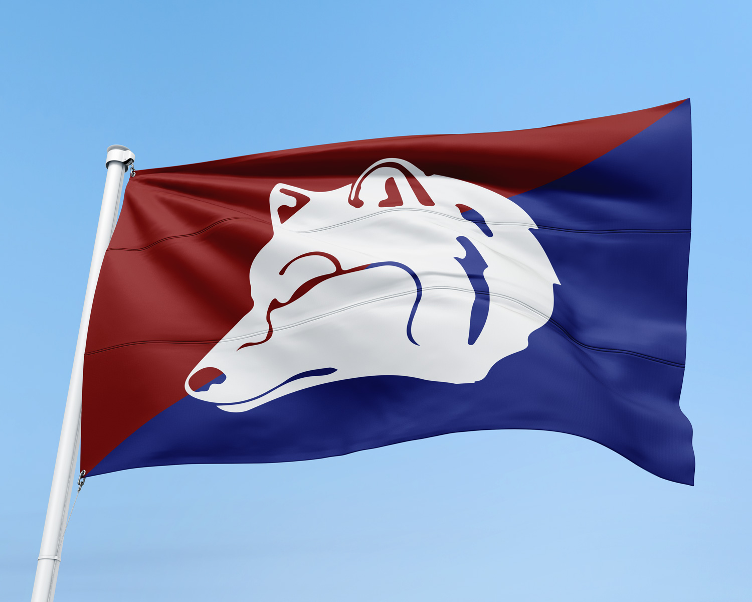 Ich habe allerdings den weißen Wolfskopf mit einer Höhe von 3/4 der Flagge nicht rot unterlegt.
