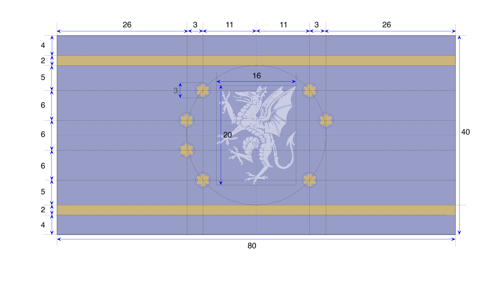 Ich habe den Drachen auf die Hälfte der Höhe verkleinert und die Sterne im Kreis angeordnet: