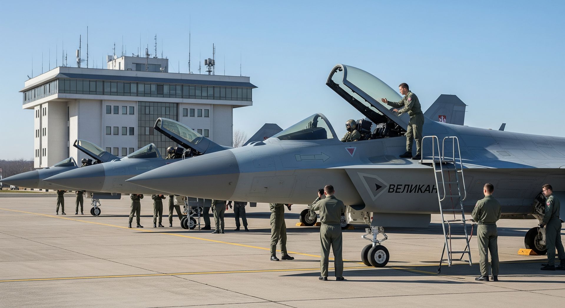• Generalpotpukovnik Mažuranić trifft zur Inspektion der ersten fertiggestellten „Velikan“-Jäger am Hauptquartier ein. Mit großem Interesse begutachtet er die Maschinen, tauscht sich intensiv mit Ingenieuren und Testpiloten aus und verfolgt die Flugdemonstration aufmerksam. Nach einer zweijährigen Entwicklungs- und Testphase stehen nun die ersten einsatzbereiten Prototypen bereit, die seine Erwartungen voll erfüllen.