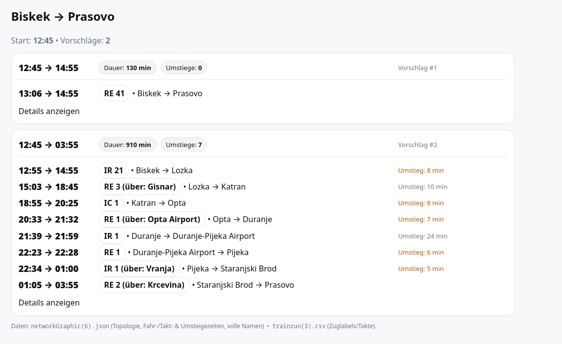 Ich brauche langfristig Anschluss an Isteran über am liebsten Skenderevo (ARS) und Skopsko (PEL).