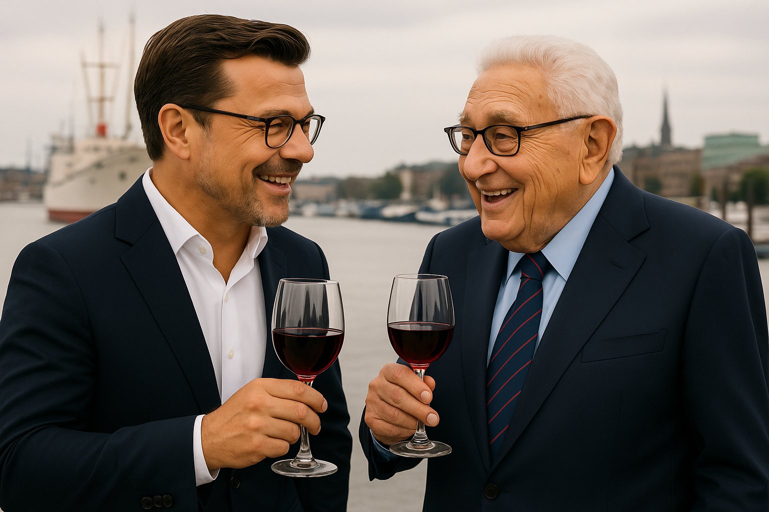 Auch der Hafen selbst präsentiert sich im festlichen Gewand: Von Masten und Kais hängen Wimpelketten, die sich wie symbolische Brücken zwischen den Schiffen spannen. Die Schiffe, teils Staatsyachten, teils zivil geschmückte Fähren, sind sorgfältig aufgereiht, als würden sie Spalier stehen. Entlang der Mole flanieren Besucher, Delegierte und Journalisten; man spürt, dass hier Geschichte geschrieben werden soll. Die Architektur ringsum – großbürgerlich, teils klassizistisch – verleiht dem Ganzen eine Aura von Dauer und Bedeutung.