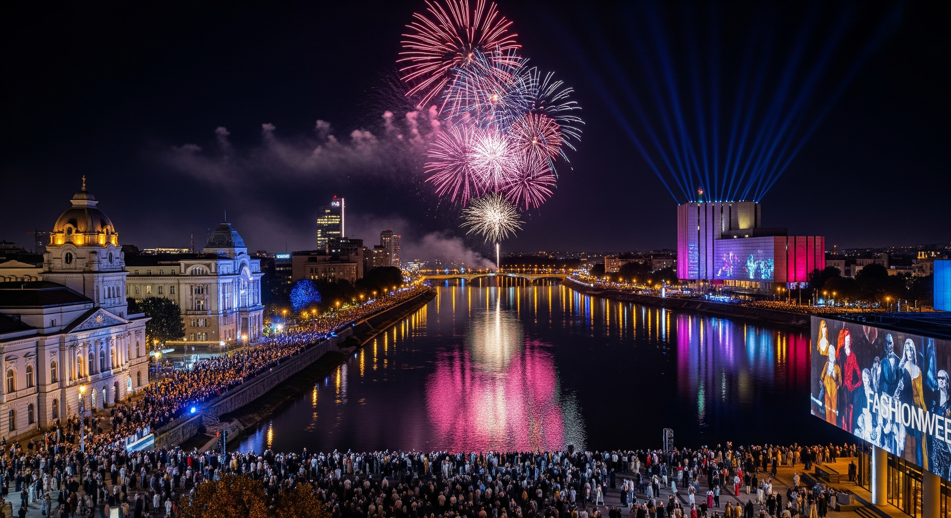 Am Abend des ersten Tages verwandelt sich die Stadt in eine große Bühne. Bereits lange vor Beginn des Feuerwerks strömen Besucher an das Ufer des Vič und auf den Dragan-Stanković-Platz. Die Straßen sind gesäumt von Verkaufsständen, die Getränke und kleine Speisen anbieten. Pünktlich um 22 Uhr beginnt das Spektakel.
