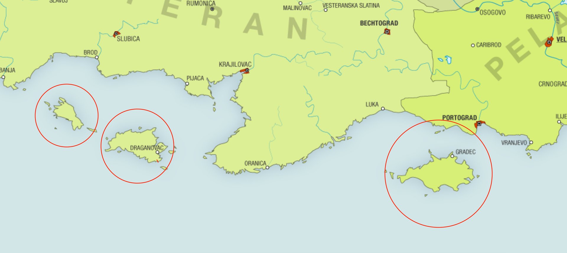Für die zweite Insel (mit der Stadt Draganovac):