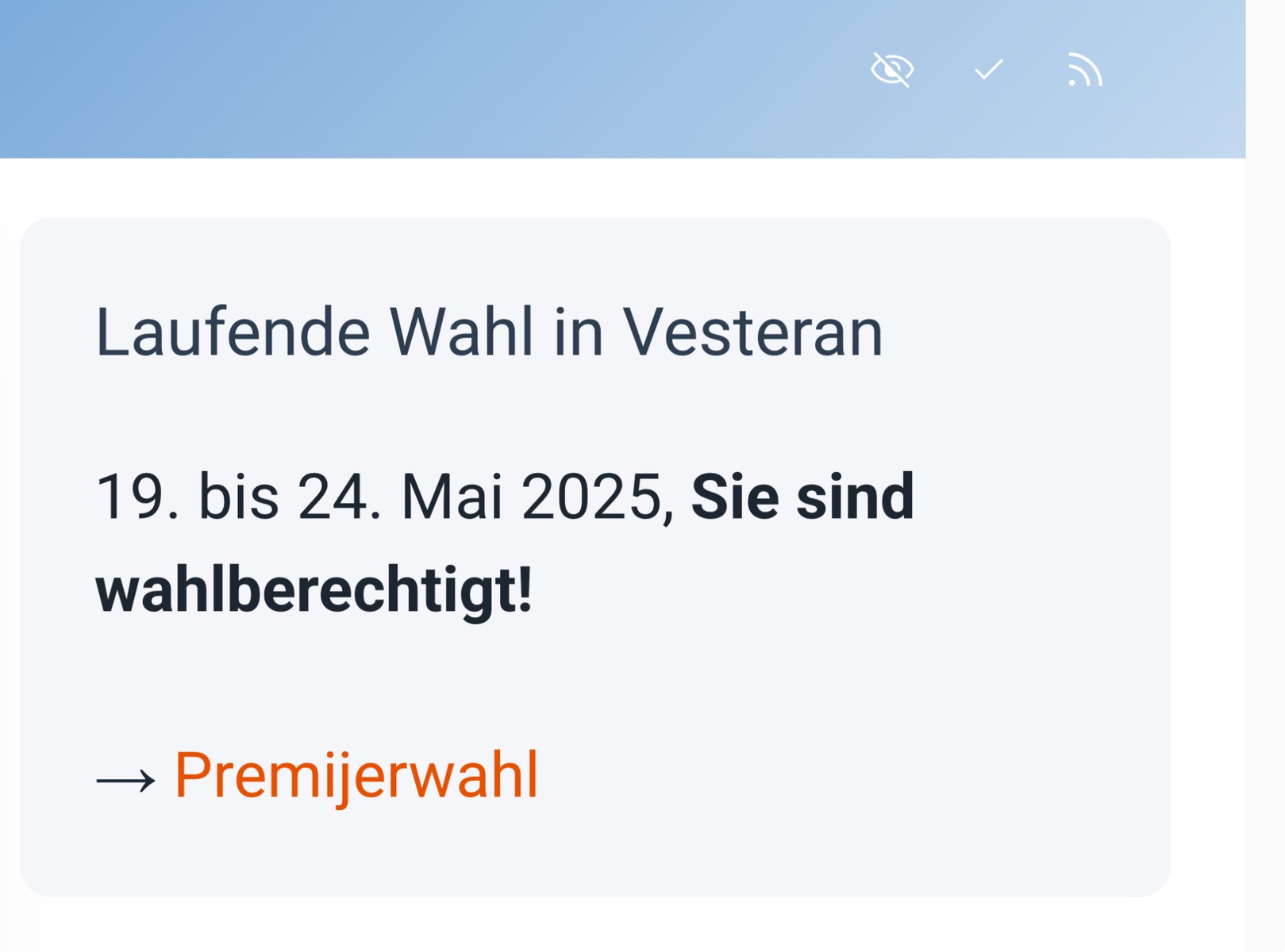 Wir hatten das mal geplant, aber nach dem Abbruch der Friedenskonferenz-Simulation aus SimOff-Gründen (mit SimOn-Begründung