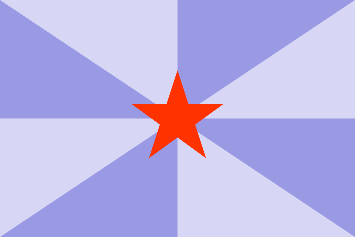 Die Flagge ist diagonal geteilt – schrägrechts von der oberen linken Ecke zur unteren rechten Ecke an der Flugseite. Im oberen rechten Dreieck befindet sich ein weißes Einhorn in schreitender Haltung auf rotem Grund (Farbcode: #e52320). Als Vorlage für das Einhorn habe ich das Wappentier des Hauses Osmołowski verwendet. Das untere linke Dreieck ist schwarz (#000000) und zeigt vier weiße, fünfzackige Sterne (#ffffff), die in Rautenform (1–2–1) angeordnet sind. Jeder Stern besitzt eine Breite von einem Zehntel der gesamten Flaggenbreite. Sowohl die Höhe der Sternengruppe als auch die des Einhorns entspricht jeweils der Hälfte der Flaggenhöhe.