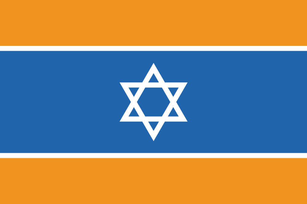 Die Flagge des Staates Sebulon hat das Seitenverhältnis 3:2, zeigt fünf waagerechte Streifen und einen zentral angeordneten Davidstern. Der obere Streifen nimmt 9/40 der Gesamthöhe ein und ist in einem kräftigen Orange gehalten (Farbwert: #f39422). Darunter folgt ein schmaler weißer Streifen von 1/40 der Flaggenhöhe (#ffffff). Der zentrale blaue Streifen (#2764ae) dominiert die Flagge und nimmt die Hälfte der Gesamthöhe ein. In der Mitte dieses blauen Streifens befindet sich ein weißer Davidstern, der genau ein Drittel der Flaggenhöhe misst.